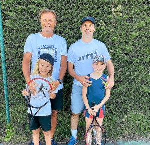 Raphaël Champion et Lilou Le Gaouyat en compagnie de leurs papas.