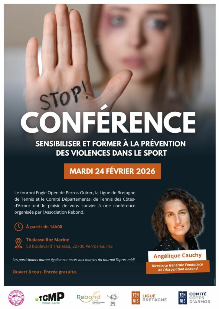 Dans le cadre de l’Engie Open et en coopération avec l’association Rebond une conférence pour sensibiliser et prévenir les violences dans le sport sera organisée dans les salons de l’hôtel Roz Marine le mardi 24 février à 14h00.